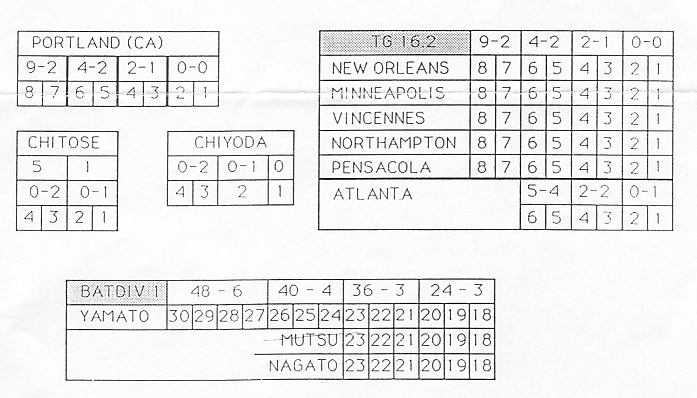 Maya: 10-2 Takao; 9-2 Kako (not "Kaka"); 9-2 Aoba
