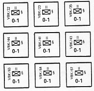 [24.7] ATOMIC DEMOLITION MUNITIONS (ADM's) Atomic Demolition Munitions (ADM's) may be used by the NATO Player only. They are nuclear weapons designed to enchance the obstacle value of the terrain. [24.71] ADM's may only be assigned to friendly NATO units, and only during the Nuclear Attack Segment of the Game-Turn prior to the Game-Turn of use. [24.72] On the Game-Turn following the turn of assignment of an ADM, the holding unit may detonate the ADM in any one hex that it passes through during the course of it first Movement Phase. [24.73] A hex in which an ADM has been detonated costs a unit twice the normal number of OP's to enter. In addition, the effects of Autobahns, roads, and access hexsides are nullified by the ADM. [24.74] An engineer unit that enters a hex subjected to ADM demolition restores the normal entry cost of that hex. [25.0] WEST GERMAN TERRITORIAL UNITS GENERALRULE: In each scenario the NATO Player may deploy a certain number of Wehrbereichskommando static infantry battalions. These units are deployed hidden and may never be moved. Static infantry battalions may be supported by West German artillery and attack helicopter units. Although these units are battalion-sized, they are considered to be company-sized for purposes of exerting a ZOC (see 6.24). CASES: [25.1] DEPLOYING Before the start of play, the NATO Player secretly writes down the hex numbers of each city hex in which he wishes to place a static infantry battalion. During play, as soon as a Warsaw Pact unit moves adjacent to a city hex containing a static battalion, the NATO Player must declare that unit's presence. If the Warsaw Pact unit occupies a hex controlled by that static battalion, it must cease its movement as per 5.22. Players may make facsimiles of the counters as shown below to use during play.
