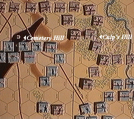 At the right is a snapshot of Cemetery Hill and Culp's Hill at the end of Couplet 2, Evening Day 1.